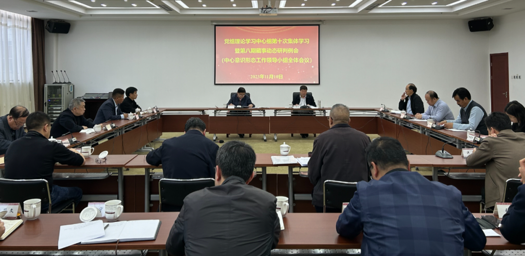 11月10日,藏研中心黨組理論學習中心組召開2023年第十次集體學習會,傳達習近平總書記對宣傳思想文化工作的重要指示和蔡奇同志、李書磊同志在全國宣傳思想文化工作會議上的講話精神。黨組書記陳宗榮主持并講話,黨組成員、副總干事李德成參加學習,中心組成員扎洛、肖杰、羅布扎西、洪濤、胡紹皆、李作泰、達瓦次仁、仲格嘉作重點發言。