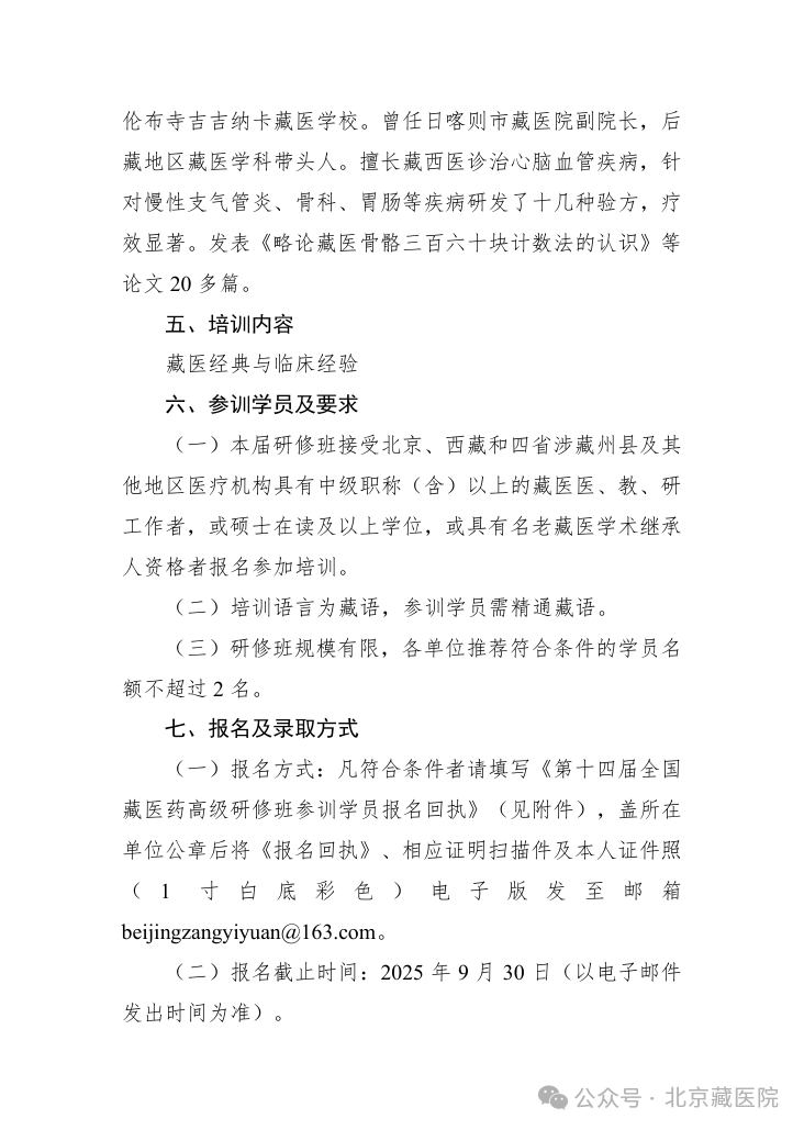 【通知】第十四屆全國藏醫藥高級研修班通知